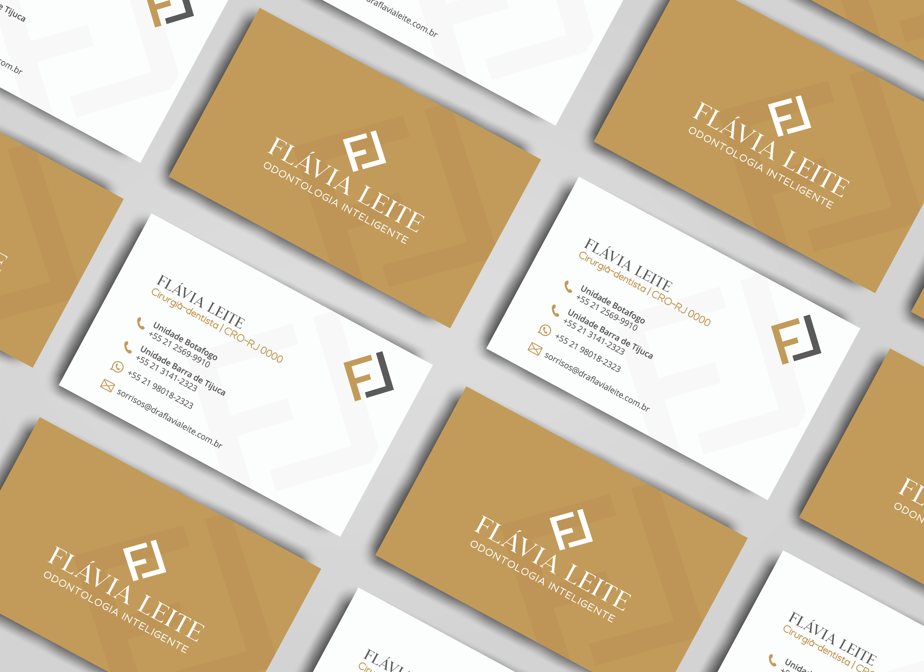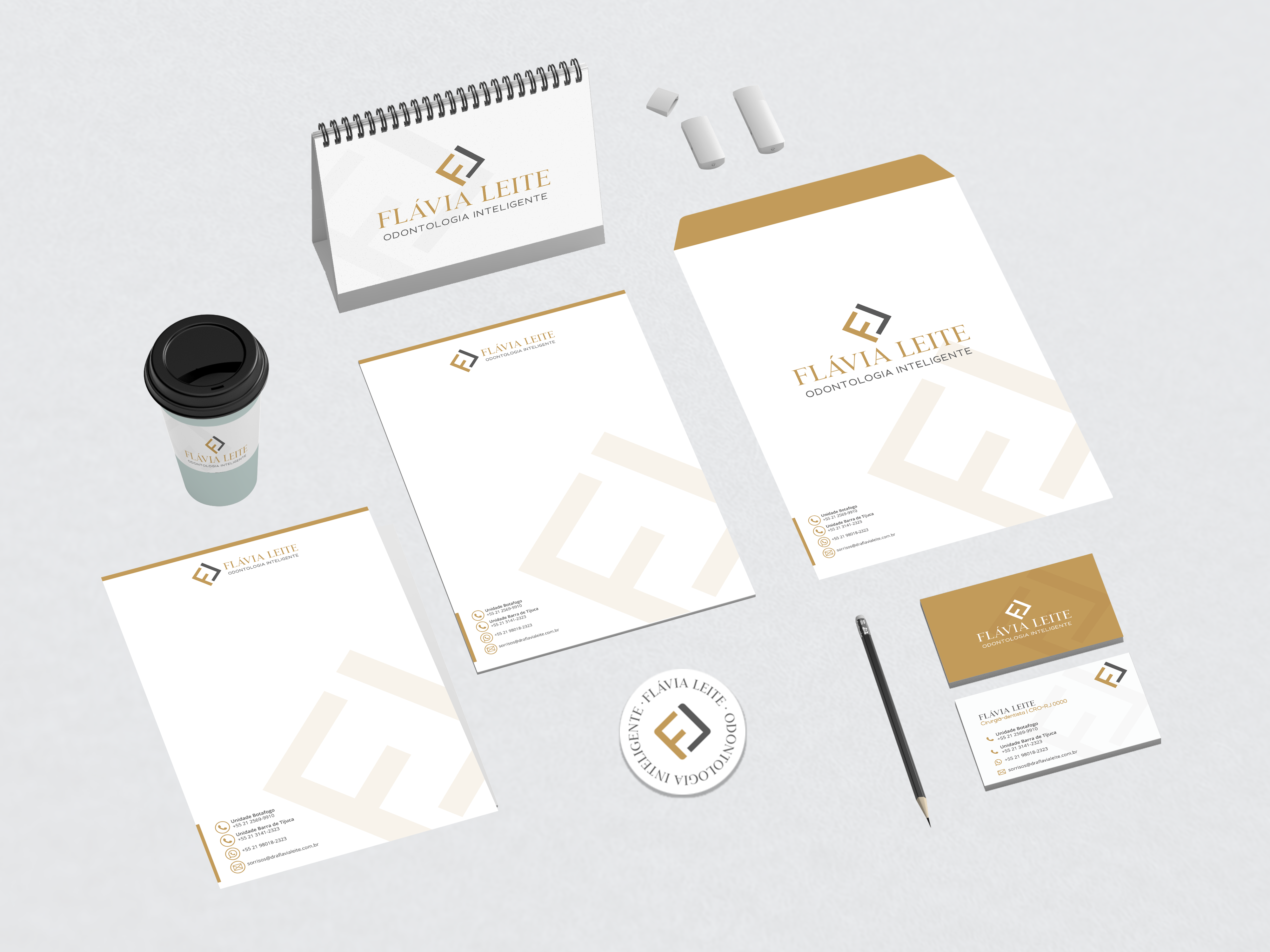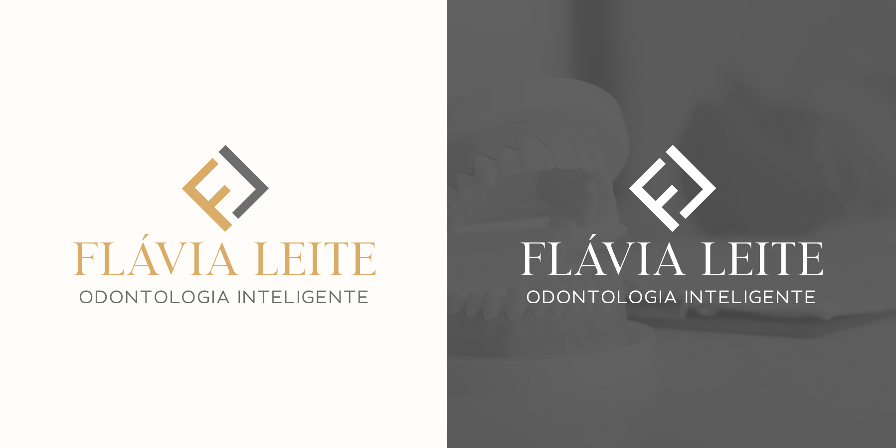 Com as mudanças em seu consultório, a Dra. Flávia Leite decidiu que seu logo deveria ser mais moderno e elegante, no qual ela pudesse usar em diversas aplicações sem perder essas duas novas características.